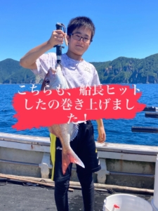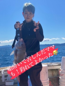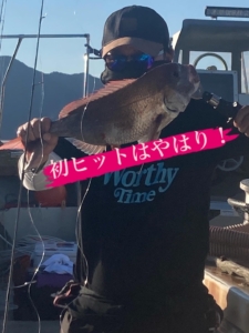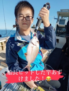 本日、船釣り初めての親子連れで出船!なんとか釣らせようと、船長も、他のお客様も皆んなで後押し!ポツポツ、パタパタで、15枚位、ブリ?かなと、ワラサと、平政で終了!最後、60センチの真鯛を狙って1メートル越えのヒラメ水面迄上がって来て、危うく食べられる所でした!あんな事あるんだなぁ?いいものみました!中々楽しい一日でした!真鯛乗り合い募集しまーす♪気軽に声かけてくださいね!