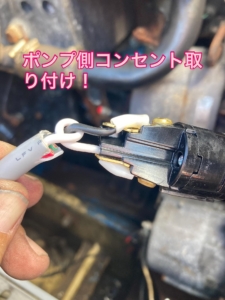 既存の,使って無いスイッチを、再利用しようと企んだが、サビサビで断念!配線だけは使いたいと、調べる事30分!何とか突き止めて、配線手直し完了!ポンプ外にだして、試運転!バッチリ👌あとは、血抜き待つのみ!