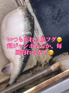 28日宙丸!毎回投稿忘れる虎フグ!今回も記録更新!凄くデカい!写真じゃわからないのが残念!今度釣れたら、船長と、白樺さんでフグ祭りですよー!