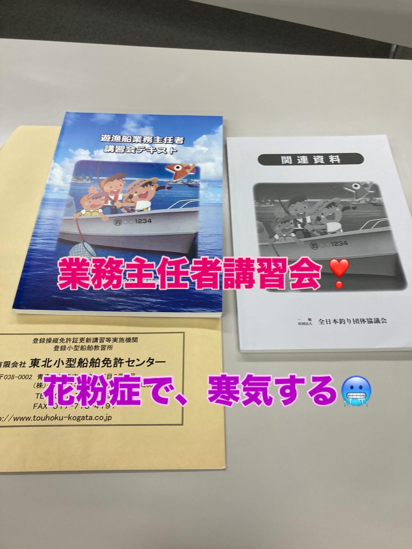 2026年4月2日 / 最終更新日時 : 2026年4月2日 ishioka 未分類 本日 講習会😭 本日、業務主任者の講習会Now!花粉症で、熱ないけど、微妙な寒気🥶頭ボーとして、体調不良😭17時迄持つだろうか?心配😭 釣り#青森#遊漁船#真鯛#マグロ陸奥湾釣り船キャスティング第三宙丸平舘真鯛平舘釣り船青森真鯛釣り船青森遊漁船タイラバ真鯛ジギング釣りガール釣り女子https://www.hirosimaru.com/ コメントを残す コメントをキャンセルメールアドレスが公開されることはありません。 ※ が付いている欄は必須項目ですコメント ※ 名前 ※ メール ※ サイト 次回のコメントで使用するためブラウザーに自分の名前、メールアドレス、サイトを保存する。